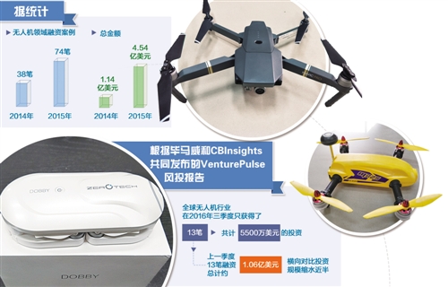 2015年被称为无人机元年,当时无人机被誉为继智能手机之后最被看好的终端市场,世界范围内许多知名厂商,如英特尔、高通、小米、腾讯、京东等纷纷涉足无人机领域。行业的快速发展也引得资本的追捧。但到了2016年,这一趋势开始放缓,到了2017年尚未见到好转的迹象。