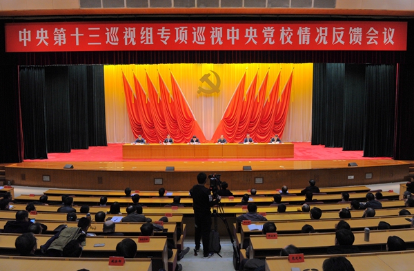 中央第十三巡视组向中央党校反馈专项巡视情况(中央纪委监察部网站 张祎鑫 摄)