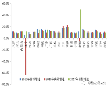 图1:2016、2017年固定资产投资目标增速对比