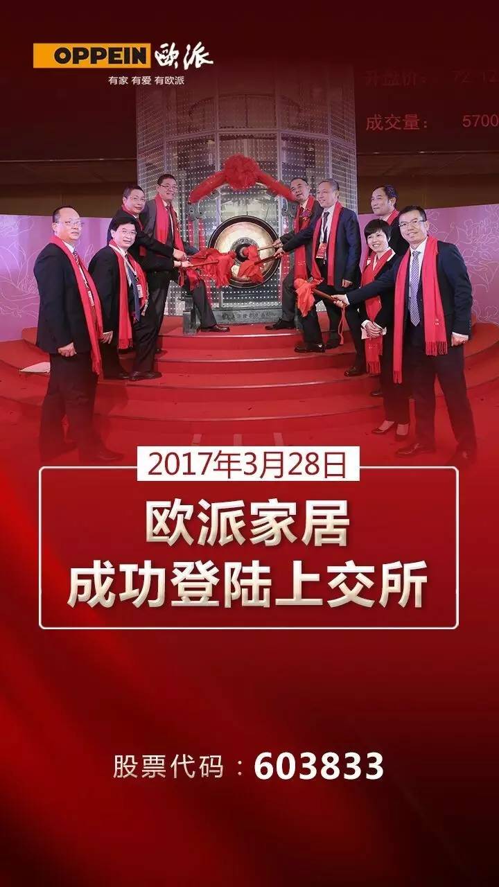 “有家,有爱,有欧派”,这句有温度的广告语已陪伴国人多年,从中国橱柜领导者到高端全屋定制龙头,耳熟能详的品牌“欧派”,于3月28日在上海证券交易所正式挂牌上市,成功登陆A股主板。这意味着资本市场再添一家居行业重量级大佬,也意味着欧派家居正在向百亿关口进军,开始新征程。
