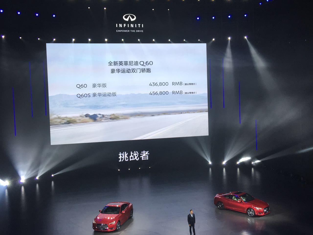 与此同时,全新英菲尼迪Q60也正式上市,有豪华版和豪华运动版两款车型供选择,零售价分别为43.68万元和45.68万元。另外,为了进一步强化“挑战者”品牌形象的落地,英菲尼迪联合全国经销商共同打造的“潜能觉醒”挑战赛也在正式启动。