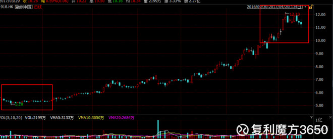 想必知道我下面就要讲融创中国(01918)了,先来口水一下其K线: