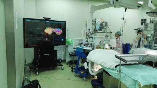 联体婴是一种临床罕见的先天畸形,其中40%-60%宫内死亡,35%生后一天内死亡,仅约30%的联体婴儿生后可能存活。患儿肝脏之间有异常的血管相通,如何在术中精准找到血管并将其切断,成为手术的关键。由于联体婴儿肝脏实质为两个,并不符合一般系统对肝脏的定义。海信医疗CAS项目负责人陈永健利用海信CAS本身具备的延展性,通过配准将相连的两块肝脏及其管道系统组合起来,帮助医生实现精准判断。