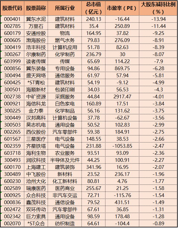 五、都跌成这样了!这30只个股还遭大股东减持抛售!