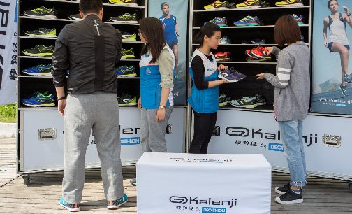 连续两周周末,这个名为“迪卡侬Kalenji box”的移动鞋柜,接连出现在上海、北京、大庆、温州、廊坊、哈尔滨、重庆等地,市民挑选感兴趣的跑鞋,穿上它在周边户外试跑,在跑步专家的指导下,了解如何挑选真正适合自己的跑步装备。据现场工作人员介绍,箱内总共陈列了32双鞋子,涵盖了迪卡侬Kiprun系列跑鞋的三大类型,适合不同跑者的跑步习惯和跑步距离:一类是为短距离跑者设计的SD系列;一类是为长距离马拉松跑者量身打造的LD系列;还有一类是为速度短跑爱好者精心推出的KipRace系列。这些跑鞋受众不同,各有千秋。每一个试穿鞋柜旁,会有两名迪卡侬跑步专家全程协助,解答跑步爱好者在跑鞋选择以及跑步过程中的各种疑问,帮助试用者根据自己的跑步习惯,选择最适合的跑鞋装备进行尝试。