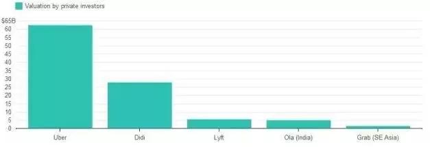 2016年8月,当Uber中国宣布被滴滴出行收购,Uber正式退出中国市场的时刻,彭博社数据显示Uber在全球的估值约为滴滴的两倍,更是其美国竞争对手Lyft和印度对手Ola的十倍以上。