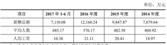 招股书显示,2014-2016年,公司的的平均人数分别为404.92人、482.58人、576.17人,人均工资分别为18.97万元、20.41万元、21.11万元,以此计算,以上三年中新赛克员工的人均年薪达20.16万元。
