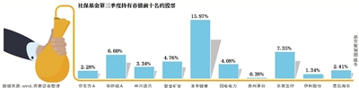 以青岛海尔为例,公司季报显示,一季度社保基金104组合增持2599.53万股,增持比例达57.90%(与原持股量相比);二季度社保基金104组合再度增持2970.01万股,增持比例为41.90%,不过另一只社保基金,103组合在二季度减持了1200万股,减持比例为24.99%,但总体依然增持;三季度,两只社保基金组合依旧在增持,数据显示,社保基金104组合增持630万股,增持比例为6.26%,社保基金103组合增持400万股,增持比例为11.10%。
