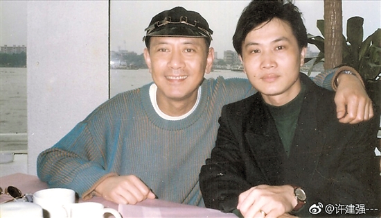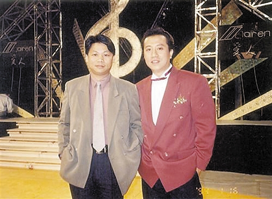 王文光(左)旧照 《My Shirley》 1990年,香港歌手李克勤推出《LOVE》精选集,其中收录两首新歌《My Shirley》和《怀念她》。《My Shirley》由广东音乐人王文光作曲,香港金牌监制向雪怀创作歌词,一推出就在多个音乐排行榜夺得冠军,并成为1990年香港“劲歌金曲”第四季季选十大金曲之一。王文光也因此成为内地第一位获得该奖项的作曲家。之后,他还为谭咏麟创作了《还我真情》《真实的谎言》等作品。 《弯弯的月亮》 李海鹰在上世纪八十年代末写出了《弯弯的月亮》。1993年,香港歌手吕方演唱了这首歌的国语粤语版本,随即在香港各大排行榜“屠榜”:1993年5月推出,6月18日登上商业电台“叱咤乐坛流行榜”冠军宝座,6月25日蝉联冠军;7月4日,登上香港电台“中文歌曲龙虎榜”首位;7月11日,位列TVB“劲歌金榜”榜首……吕方也因此“咸鱼翻生”。 《富士山下》 陈奕迅的《富士山下》(国语版《爱情转移》),编曲出自广东音乐制作人陈珀之手。毕业于星海音乐学院作曲系的陈珀是不少香港流行金曲的幕后功臣,除了《富士山下》,她还制作过陈奕迅的《不如不见》、吴雨霏的《我本人》《吴哥窟》、陈慧琳的《延期》等。