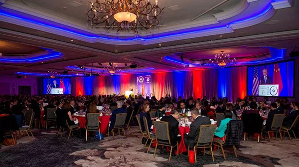 祝贺美中贸委会成立45周年。你们的辛勤工作和卓著成就体现了美中贸委会和美国工商界致力于发展中美关系的愿景和决心。请允许我向美中贸委会所有成员以及历届董事会和主席致敬。我也想借此机会祝贺希尔斯大使,您为中美关系做出了杰出贡献,获得2018年度嘉奖之无愧。