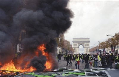法国民众怒了。11月17日,28.7万人参加示威抗议游行;11月24日,16.6万人参加示威抗议活动,抗议者包围总统府、占领主要道路和收费站、加油站等。