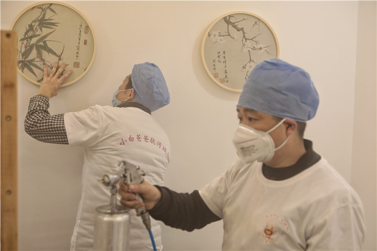 战队成员们一点一点把液体均匀地喷在家具上,连边边角角也没放过。“这个工作最难的是要有耐心和细致,每个地方都要喷到,差一点,甲醛就包不住。”高玉康说,而这也正是小白爸爸们的优势,“我们比其他人更懂得装修污染的危害性。”