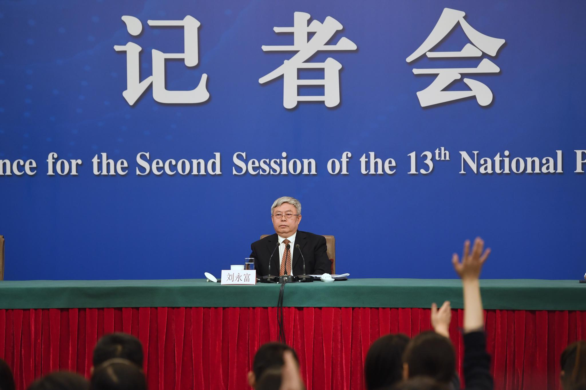 3月7日,国务院扶贫开发领导小组办公室主任刘永富参加十三届全国人大二次会议举行记者会。 摄影/新京报记者 彭子洋