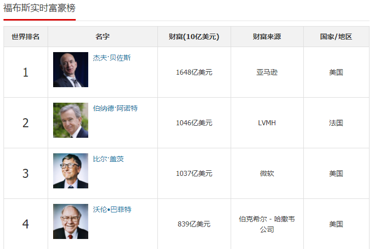 最新福布斯富豪榜显示,巴菲特以839亿美元位列世界第四大富豪,而其财富主要来源则是伯克希尔哈撒韦公司。
