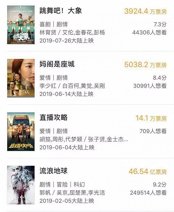 而2019年上半年万达电影参与出品发行的电影包括《飞驰人生》(票房17.16亿)、《熊出没·原始时代》(票房7.14亿)、《反贪风暴4》(票房7.95亿)、《追龙2》(票房高3.06亿)等,主控作品并不多,同时缺乏票房爆款作品。