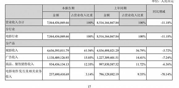在北京文化之前,万达电影也发布了半年报,财报显示,万达电影营收75.6亿,同比下降11.18%;归属于上市公司股东的净利润为5.24亿,同比减少61.88%。这是万达完成重组之后的首份半年报,表现不及预期,电影市场行业整体下滑,万达有着院线支撑,但寒冬的影响依然明显。