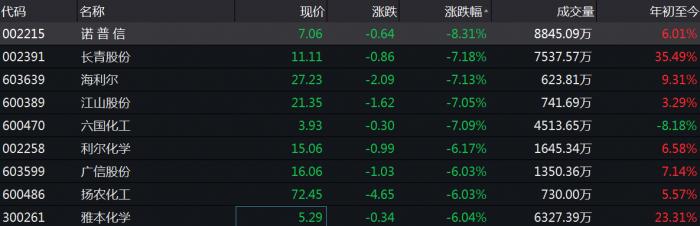 个股方面,虽然也出现了大幅回落的情况,诺普信、长青股份等9只个股跌幅超过6%,但是尚未出现跌停情况。