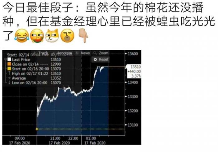 蝗灾也成为了“最佳段子”,虽然今年的棉花还没播种,但在基金经理心里已经被蝗虫吃光光了……