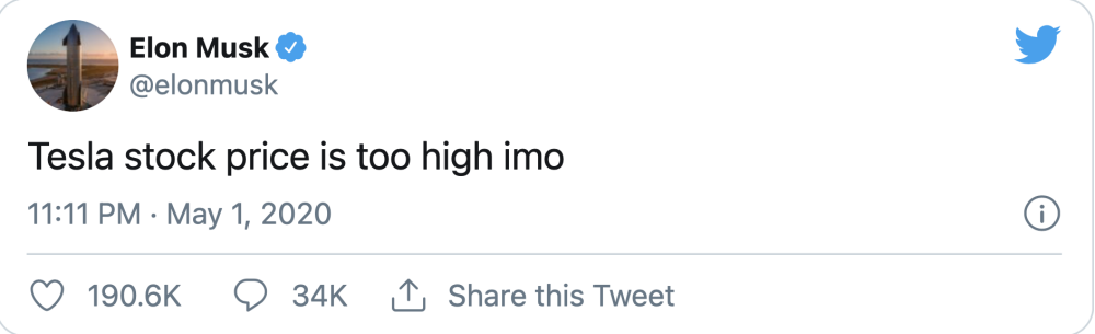 (马斯克去年5月发布的推文)