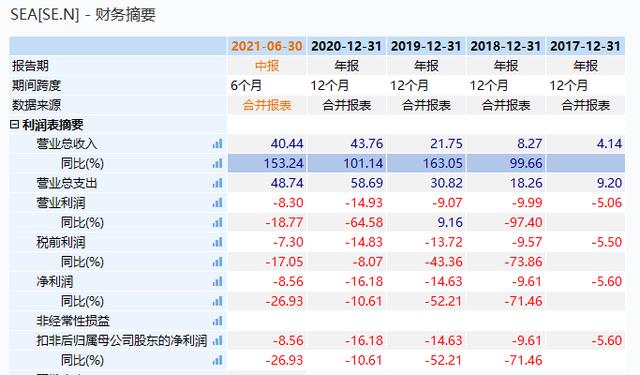 疫情的爆发更是加快了电商在新兴市场国家的普及,随着业务快速扩张,冬海近两年的营收分别增长163%和101%。8月17日,冬海集团公布2021财年中报,归属于母公司普通股股东净利润为-8.56亿美元,同比下降26.93%;营业收入为40.44亿美元,同比上涨153.24%。