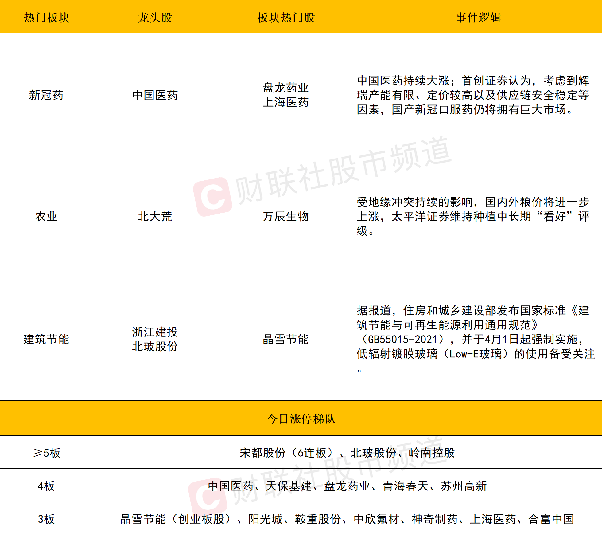 目前主线明显是新冠药概念,中国医药14天11板,盘龙药业、益盛药业、中欣氟材、国药现代、上海医药、合富中国等低位抗疫概念股以一字涨停形式进行补涨,万邦德、众生药业、精华制药、龙津药业、大理药业等20只左右个股换手涨停助攻。