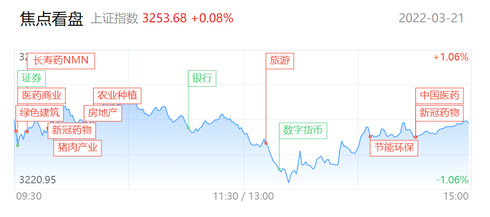 市场热点快速轮动,早盘农业、新冠药、NMN、地产、建筑节能等板块走强,午后雄安、环保、旅游、新冠药等板块继续走高。