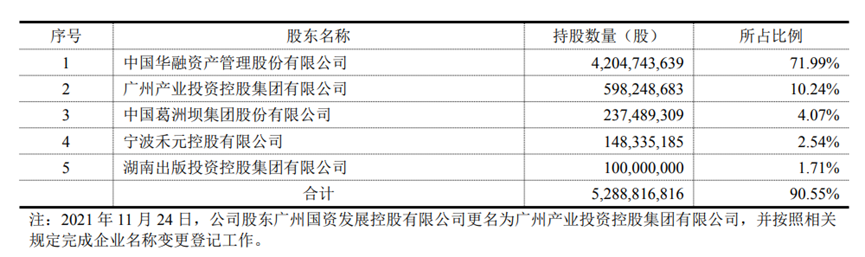 本次转让完成后,中国华融将不再拥有华融证券任何股权,且后者不再纳入集团合并财务报表;而国新资本将成为华融证券控股股东。根据华融证券2021年年报,中国华融之外,华融证券前五大股东分别为,广州产业控股集团(持股10.24%)、葛洲坝集团(持股4.07%)、禾元控股(持股2.54%)、湖南出版投资集团(持股1.71%)。