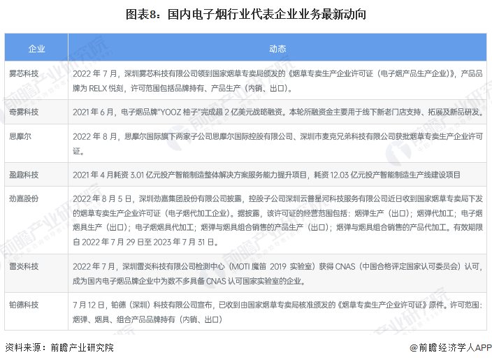 2022年以来,新型烟草制品行业电子烟品牌牌照密集发放,雾芯科技等头部品牌陆续获批,并加快各自电子烟业务的发展。