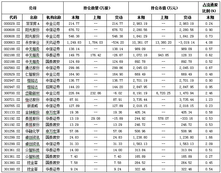 另外,民生证券持有的岳阳林纸(600963)在去年四季度均持股不动。而新进的个股还有亚翔集成(603929)、耐科装备(688419)、挖金客(301380)、众智科技(301361)以及金钟股份(301133)。