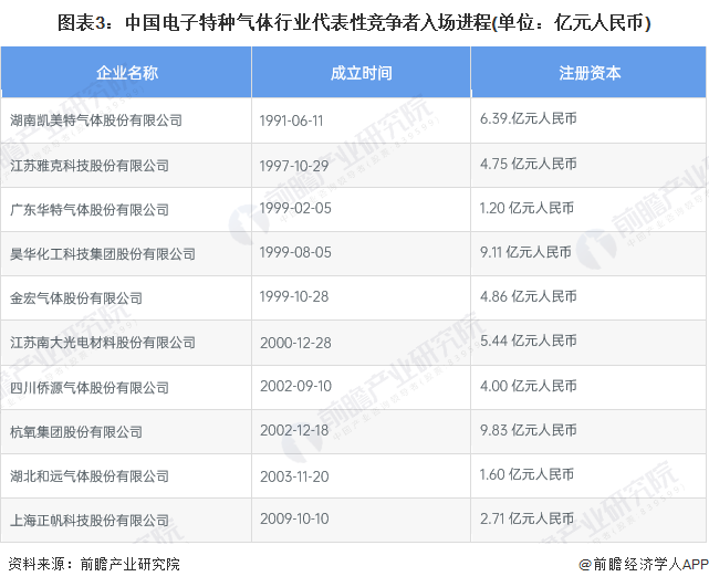 2、中国电子特种气体行业竞争者入场进程