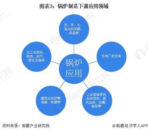 我国锅炉应用下游产业众多,锅炉在工业生产、发电厂发电与居民日常生活均可起到重要作用。锅炉可输出具有一定热能的蒸汽、高温水或有机热载体。因此,从某种程度上来说,需要使用热蒸汽、高温水的产业均可使用锅炉。但由于锅炉设备体积大且造价高,目前我国锅炉使用频率较高的产业仍多集中在工业产业。