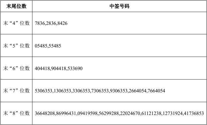 据交易所公告,信宇人公布网上中签结果。中签号码共有16618个,每个中签号码只能认购500股信宇人股票。