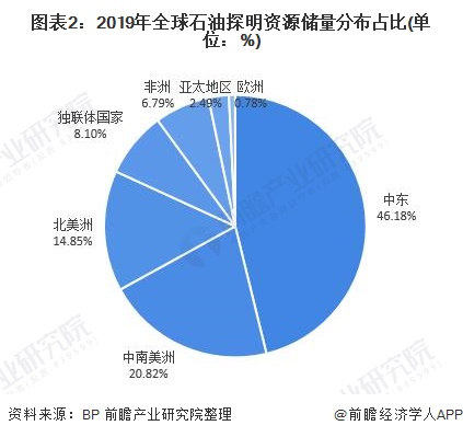 根据统计数据,2019年全球石油资源储量分布如下:中东国家的石油储量为1129亿吨,占全球46.2%;南美和中美洲地区的石油储量为509亿吨,占全球20.8%;北美地区的石油储量为363亿吨,占全球14.8%;欧洲地区的石油储量为19亿吨,占全球0.8%;非洲地区的石油储量为166亿吨,占全球6.8%;亚太地区的石油储量为61亿吨,仅占全球2.5%的份额。此外,2019世界石油储产比(石油储量/石油产量)为49.9,与2018年50.0基本持平。