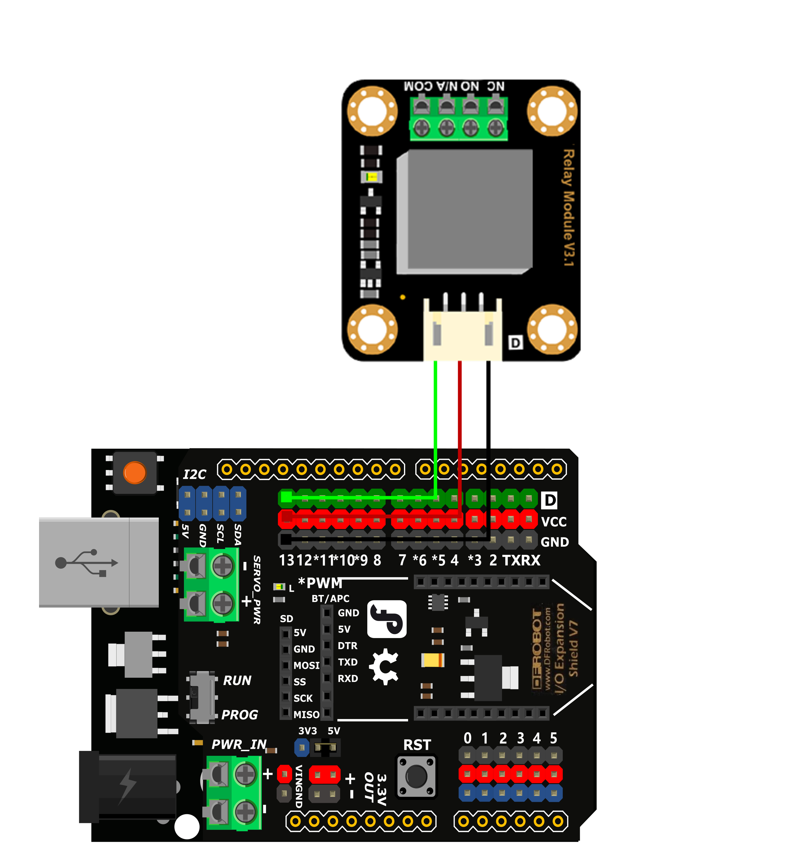 4、将继电器连接到数字引脚13