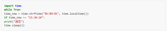 您可以使用time模块的time.strftime()函数来确定时间。在示例中,它每天在15:30:10设置"Watering"。在实际使用中,您可以相应地添加继电器控制功能。