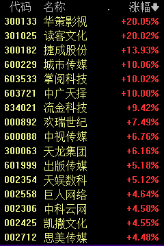 今天上午,Kimi概念继续大涨,华策影视迎来20%涨停,掌阅科技、中广天择等个股也“一”字涨停。