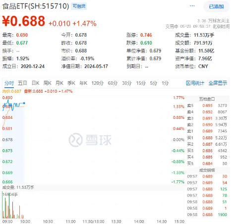 文中图片及数据来源于沪深交易所、华宝基金、Wind、雪球等,截至2024年5月20日。风险提示:食品ETF(515710)被动跟踪中证细分食品饮料产业主题指数,该指数基日为2004.12.31,发布于2012.4.11,指数成份股构成根据该指数编制规则适时调整。文中指数成份股仅作展示,个股描述不作为任何形式的投资建议,也不代表管理人旗下任何基金的持仓信息和交易动向。基金管理人评估的本基金风险等级为R3-中风险,适合适当性评级C3(平衡型)及以上投资者。任何在本文出现的信息(包括但不限于个股、评论、预测、图表、指标、理论、任何形式的表述等)均只作为参考,投资人须对任何自主决定的投资行为负责。另,本文中的任何观点、分析及预测不构成对阅读者任何形式的投资建议,亦不对因使用本文内容所引发的直接或间接损失负任何责任。基金投资有风险,基金的过往业绩并不代表其未来表现,基金管理人管理的其他基金的业绩并不构成基金业绩表现的保证,基金投资需谨慎。