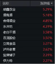 成份股方面,白酒再度集体走强,顺鑫农业(000860)、酒鬼酒(000799)双双飙涨超5%,舍得酒业(600702)、水井坊(600779)强势涨超4%,老白干酒(600559)等涨超3%,贵州茅台(600519)、五粮液(000858)、泸州老窖(000568)、山西汾酒(600809)、洋河股份(002304)等白酒龙头亦集体飘红。