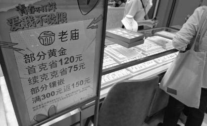 在国际金价上涨的同时,国内部分金店的黄金价格也猛涨到最高746元/克。金融投资报记者走访发现,“520”期间浪漫经济持续升温,部分金店通过各种优惠活动吸引顾客,掀起了一波黄金消费小高峰。■本报记者 陈雨禾 文/图