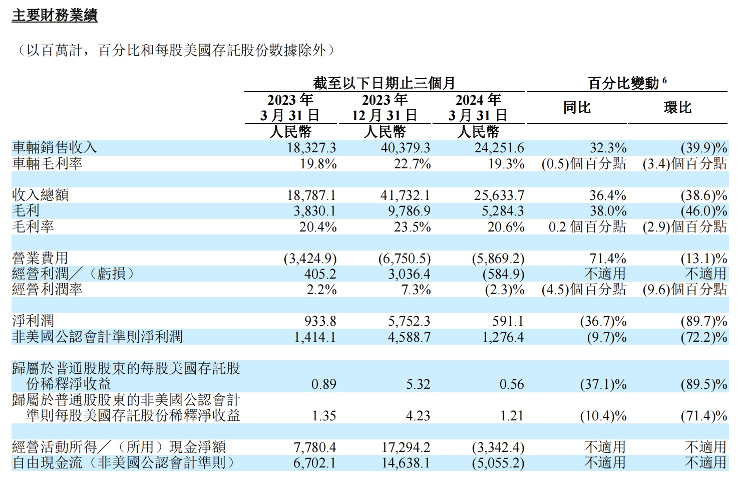 第一季度毛利率只有20.4%,相比2023年第四季度的23.5%环比大降3.1个百分点。