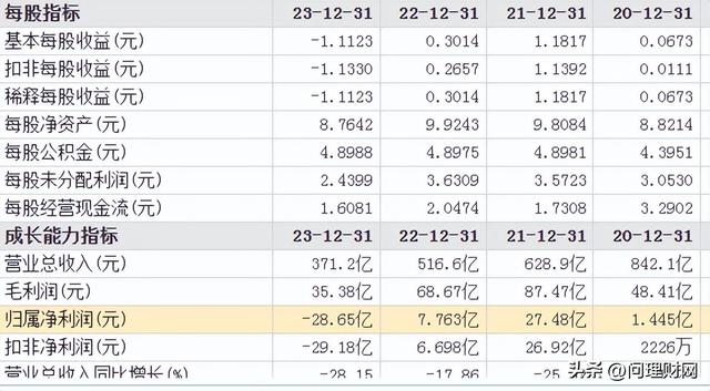 2024年一季度,公司实现营业收入77.80亿元,同比下降27.33%,净利润-1.77亿元,依然处在亏损状态!