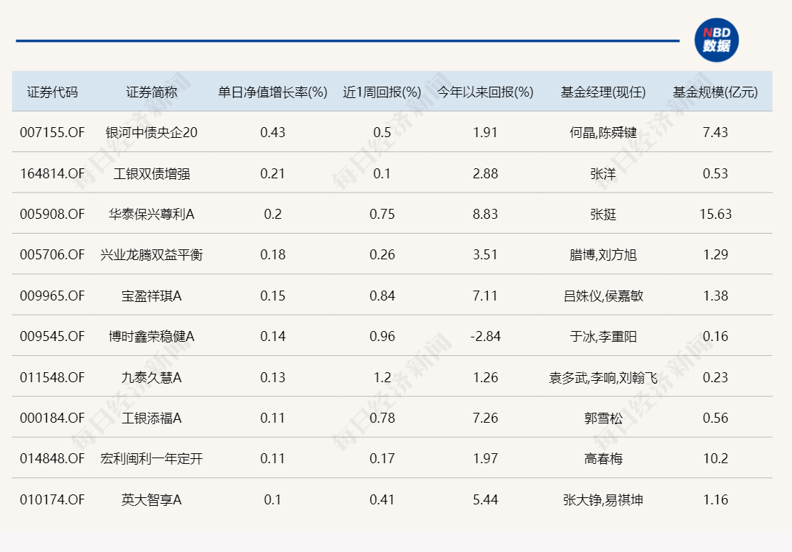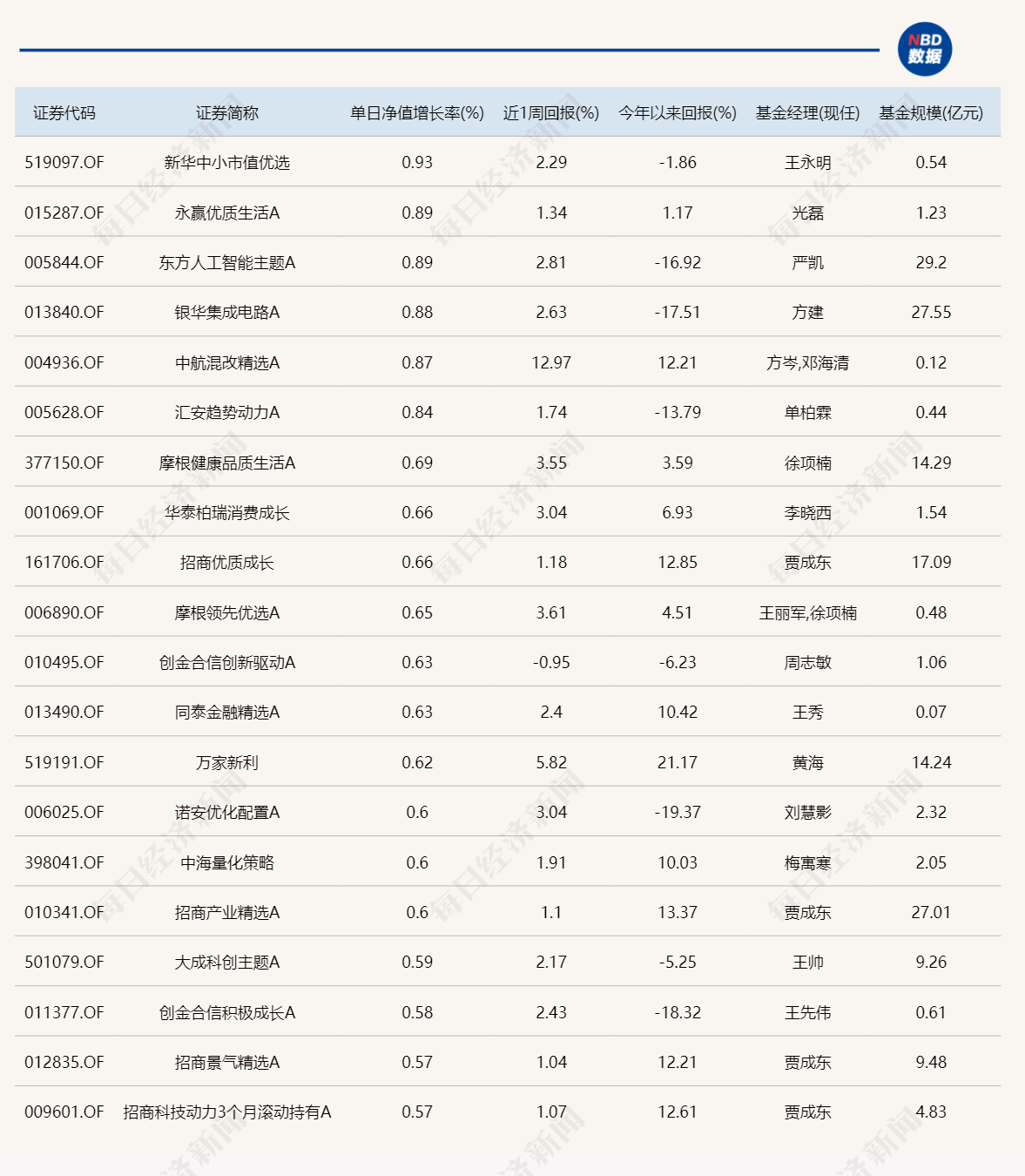 点评:受行情压制,今天涨幅榜上的基金表现都不太突出,无一只产品涨超1%。