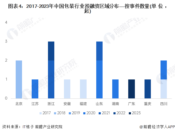 3、浙江省和山东省包装行业投融资数量最多