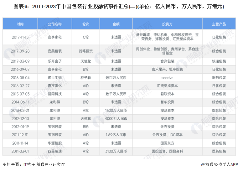 2017-2023年我国包装行业的主要投融资事件如下: