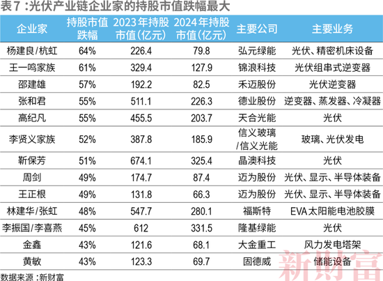 2024年创富榜上,身家跌幅最深的50人中,有高达13人来自风光储产业链,其跌幅均超过40%。