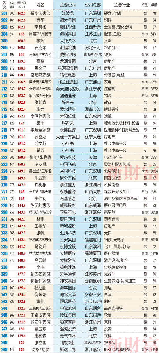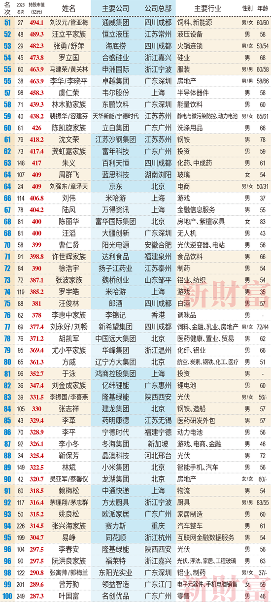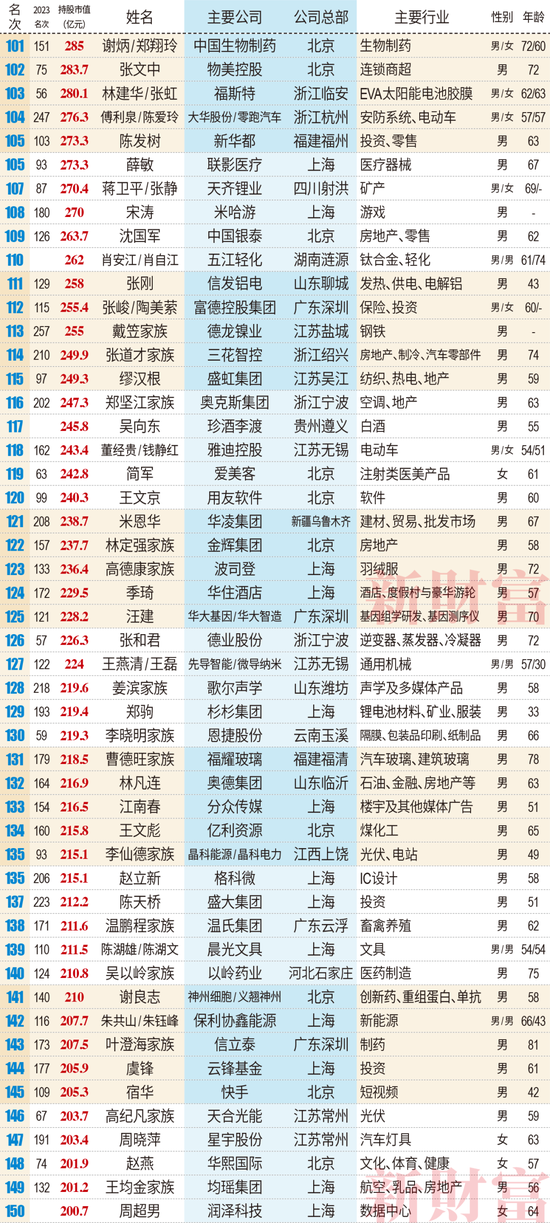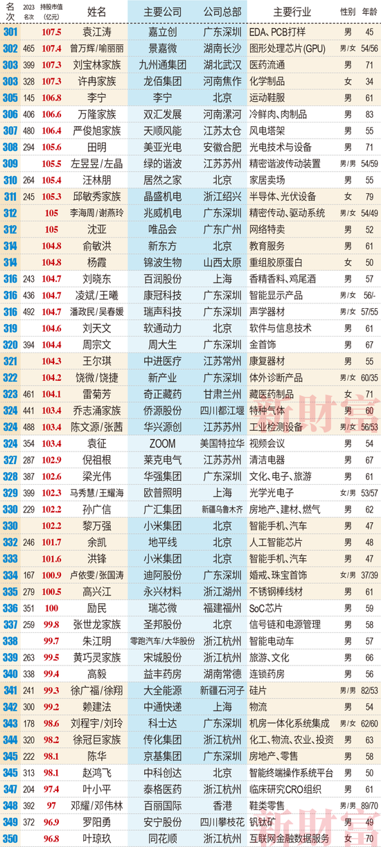 而兼具网游、WEB3.0、元宇宙等多重概念的昆仑万维,亦宣布“All in AGI与AIGC”,其股价暴涨数倍,不仅带动创始人周亚辉重新回到榜单,早前已与周亚辉离婚的李琼今年也顺利登榜。