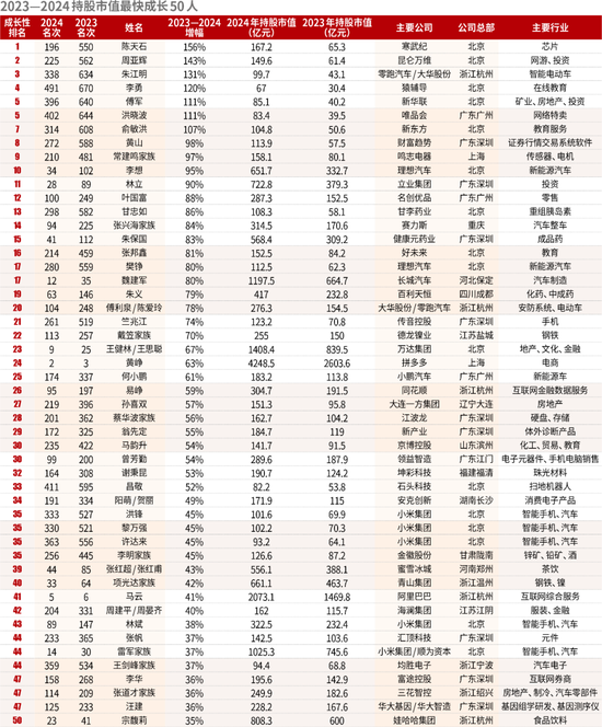 当然,整体的增长,无法代言身处其中每一个人的境况,每年的上榜人都有约1/5的更迭,映射经济结构转换的无声淘洗。电动车、风光储、芯片等大批新质生产力领域的企业家竞相上榜,也有一些企业家由于转型升级中的市场优胜劣汰,或加强监管下的经营粗放违规,跌落榜单。