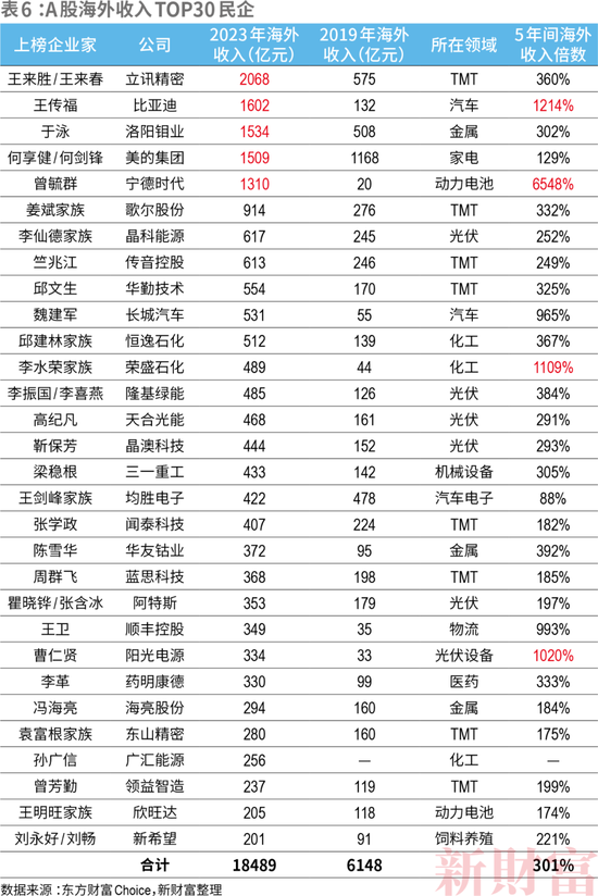 出海破壁,2/3的A股公司已产生海外收入,海外收入前30名的民企均为上榜企业家所创立。