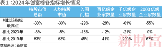 其一,对比2021年的历史高位,几项主要指标均下滑了三成左右。由于上榜企业家主要持股分布在A股、港股和美股市场,大盘调整直接影响了他们的持股市值表现。