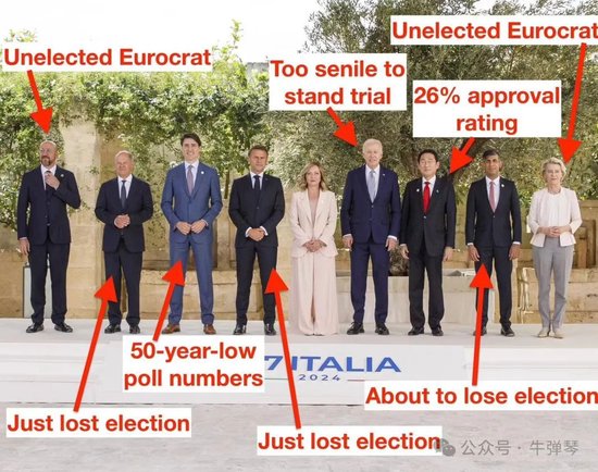 因为很简单,除了东道主、意大利女总理梅洛尼之外,其他G7领导人都是焦头烂额,很可能明年开会,他们都鞠躬下台了。